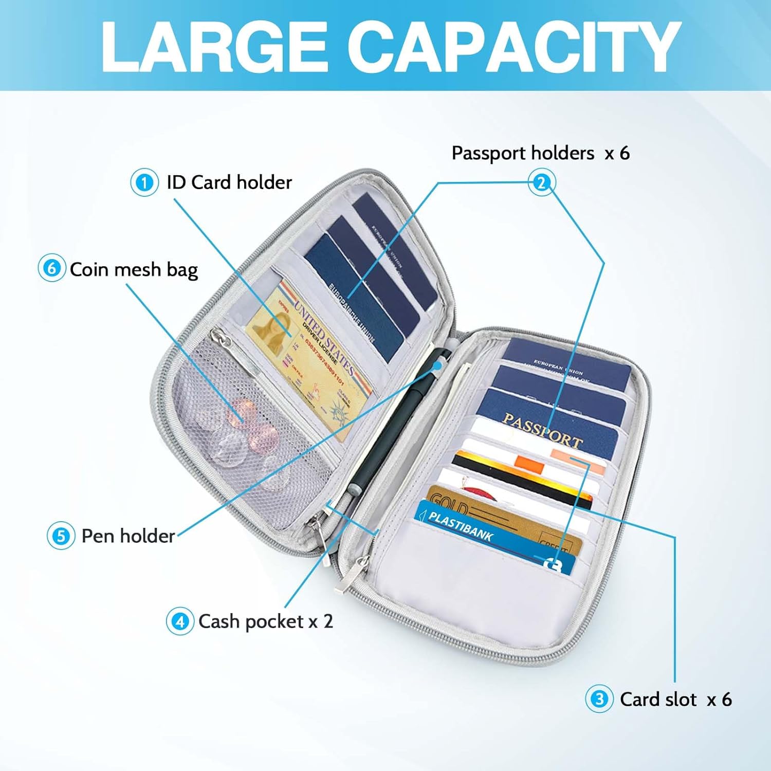 This travel wallet is designed to hold multiple passports, credit cards, and other travel essentials all in one convenient place. The RFID blocking technology ensures that your personal information stays secure and protected from identity theft.